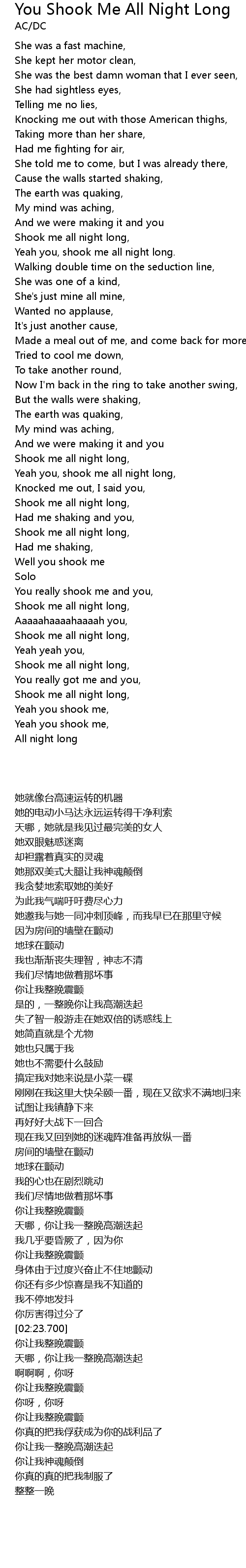 "AC\/DC - You Shook Me All Night Long Lyrics", . "AC\/DC - You Shook Me All Night Long (Lyrics)", ..